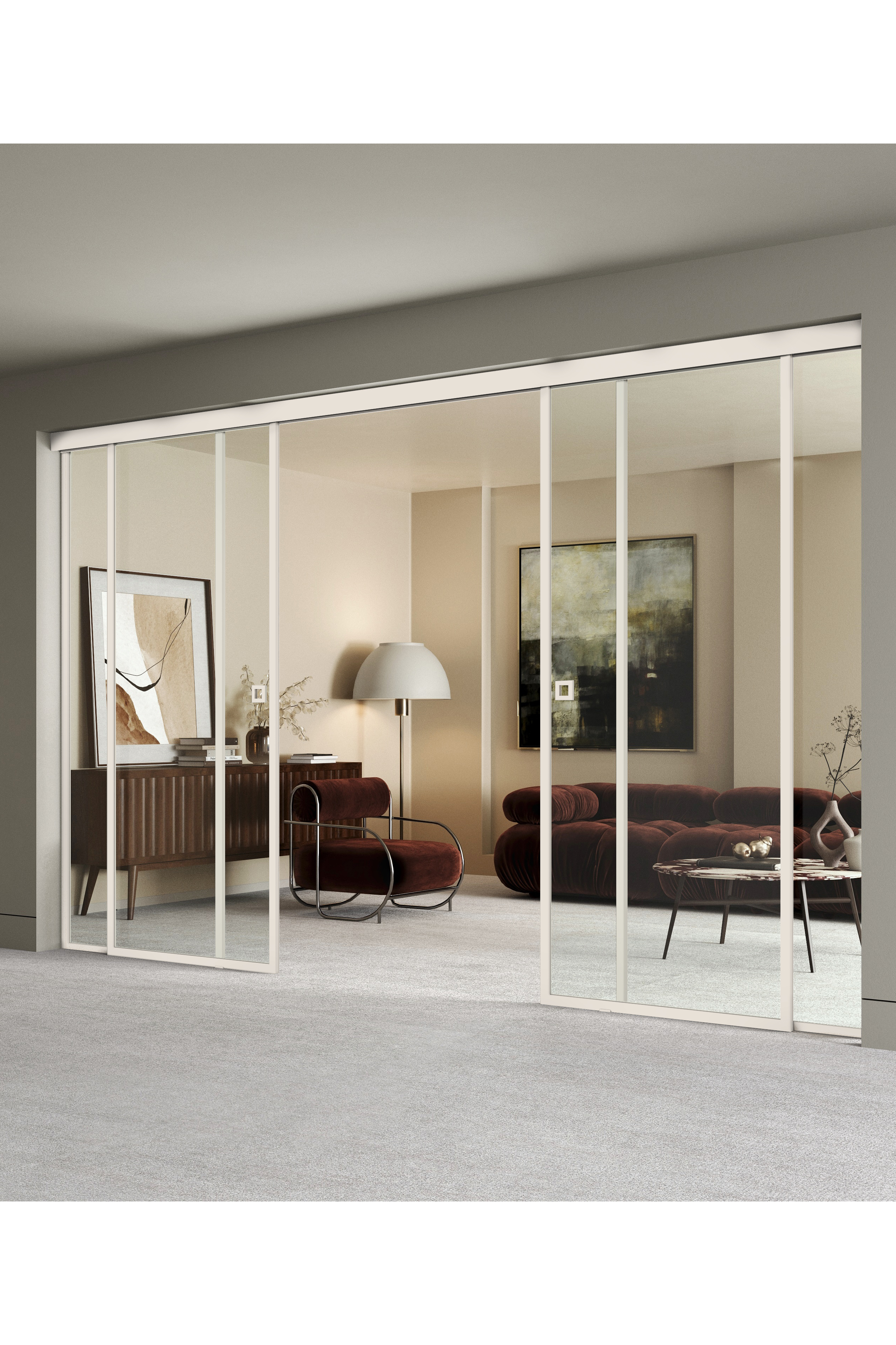 The product is manufactured of 6mm thick tempered safety panel (EN 12150). Transparent, super bright, grey and brown are smooth surfaced and transparent panels. Reeded and satin panels are not fully transparent, details cannot be made out through the panel. The reeded glass is smooth on one side and textured on the other. One side of the satin panel is etched to acquire a velvety feel and the other side is smooth. When choosing a satin panel product, bear in mind that the etched surface of the panel is sensitive to scratches and stains.