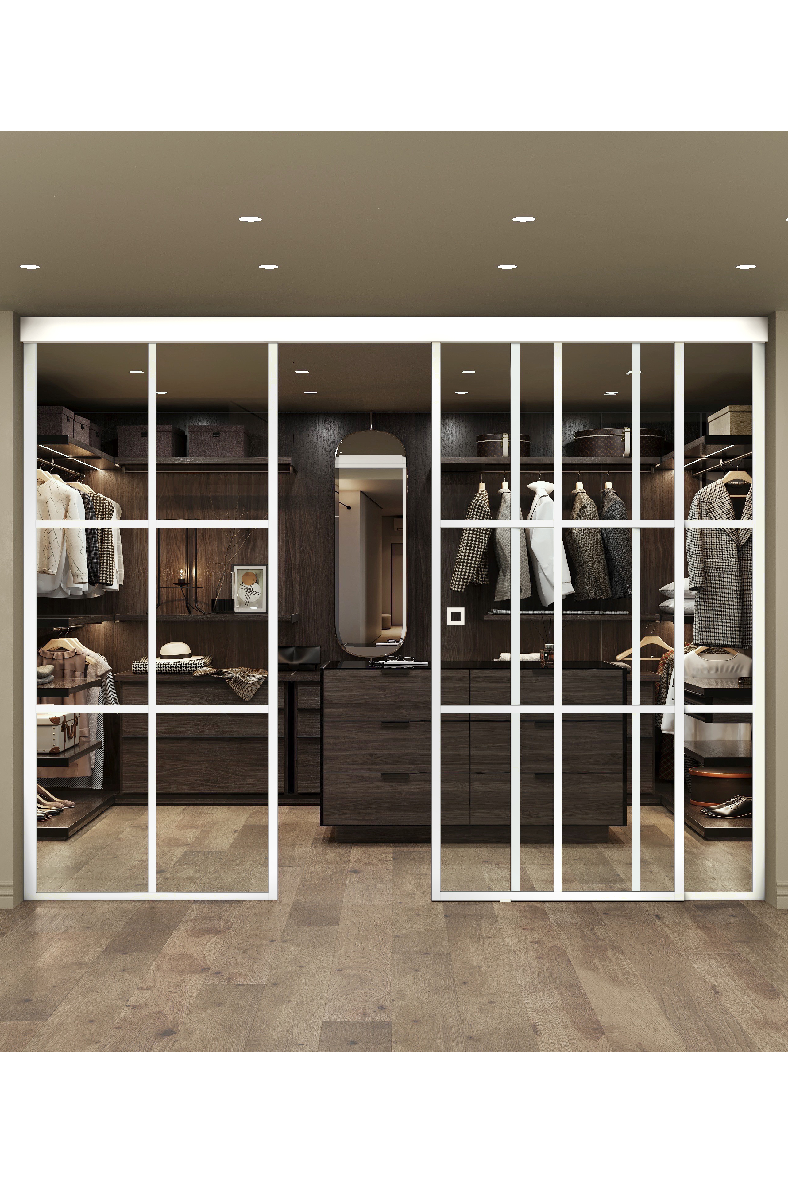 Liukuovi soft closing -mekanismilla ja kahdella kiinteällä seinällä