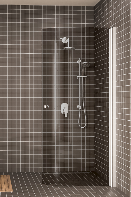Duschhörn med vändbara dörrar, av vilka den ena har en fast del