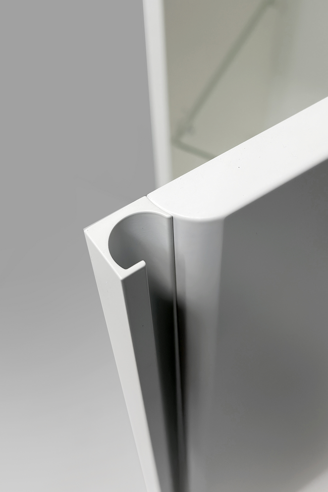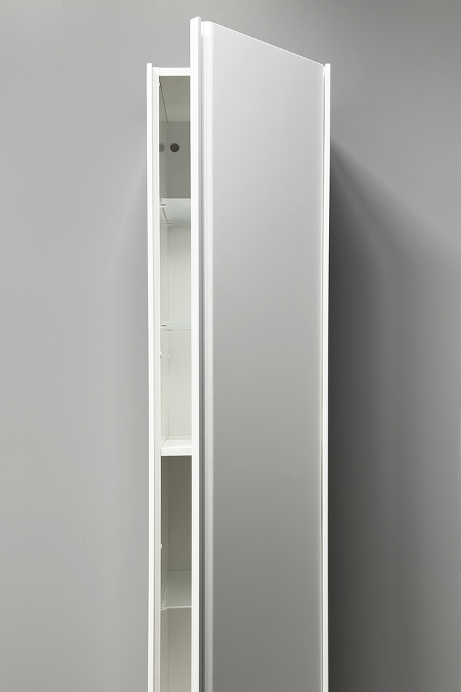 Tall unit is delivered as assembled and door handedness is selectable during the mounting phase. Unit is mounted on the building wall using screws. Unit is not attached on the floor using e.g. supporting legs. Installation height can be freely chosen. The structurer of the unit is humidity resistant but should be protected from water splashes e.g. using a shower screen.